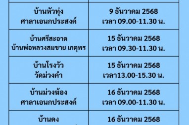 ประชาสัมพันธ์ การออกให้บริการค่าธรรมเนียมการเก็บขน และกำจัดขยะมุลฝอย ประจำเดือนธันวาคม 2568