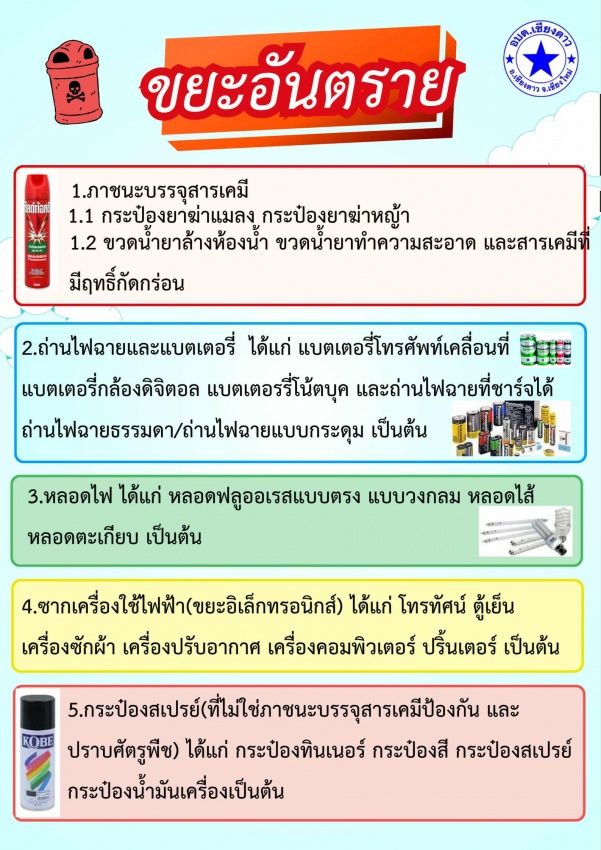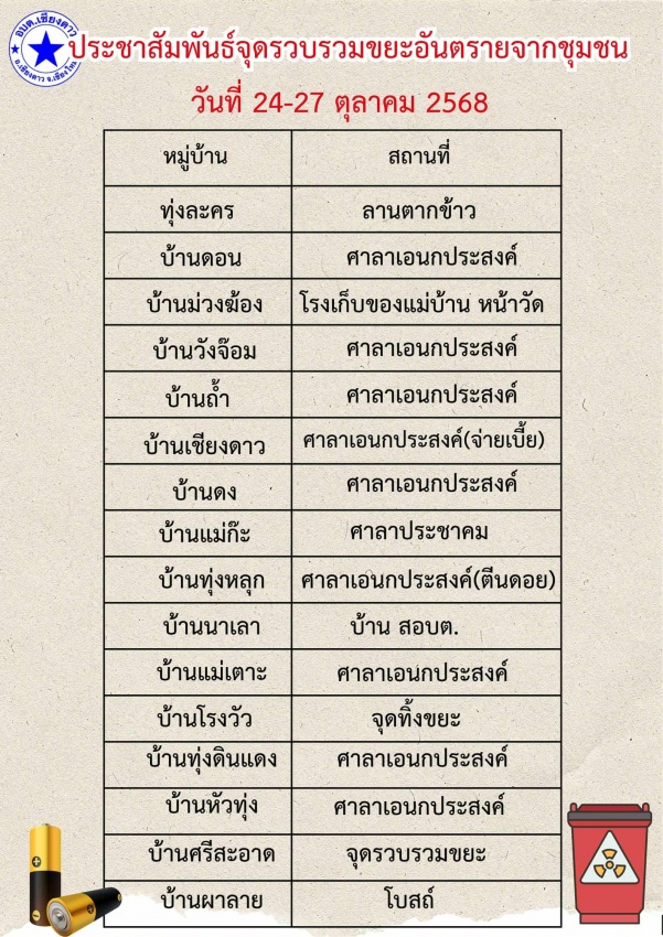 องค์การบริหารส่วนตำบลเชียงดาว ขอประชาสัมพันธ์การจัดเก็บรวบรวมของเสียอันตรายจากชุมชน