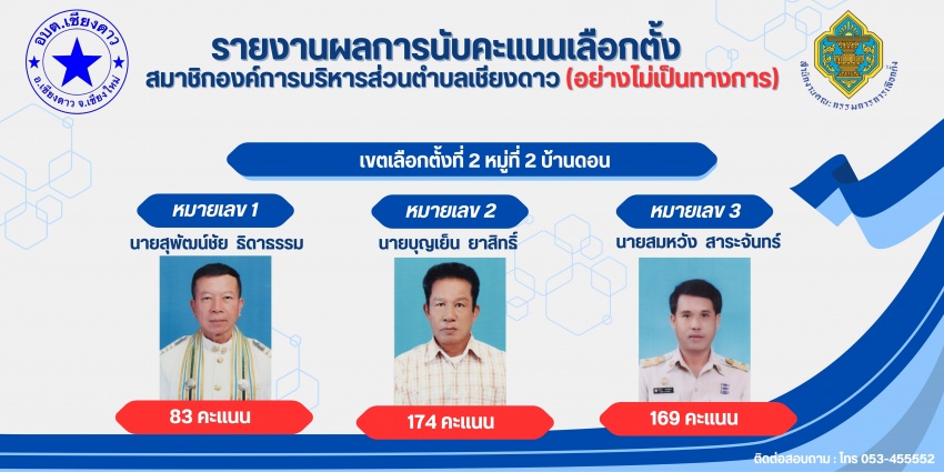 นายชัย อิธรรมะ - ปลัดองค์การบริหารส่วนตำบลเชียงดาว ปฏิบัติหน้าที่ นายกองค์การบริหารส่วนตำบลเชียงดาว